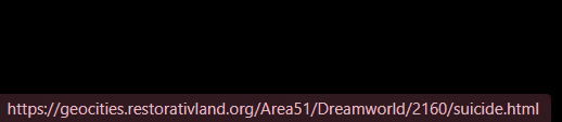 the page very briefly forwards, then refreshes at yahoo. i'm left wondering what it was truly about, whether its a "seek help" page, a note, or a cautionary tale. but this is old web, and part of the mistique is that you'll never really know.
